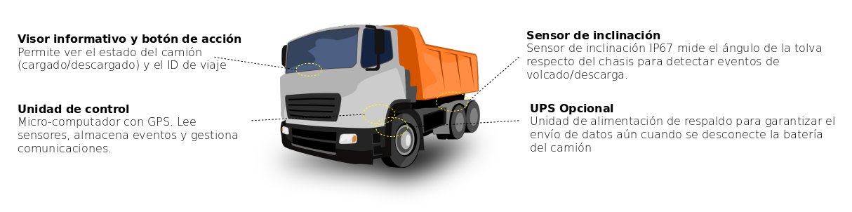 Seguimiento viaje a viaje mediante GPS y detección de levantes de tolva. Plataforma web integrable con sus sistemas de gestión.